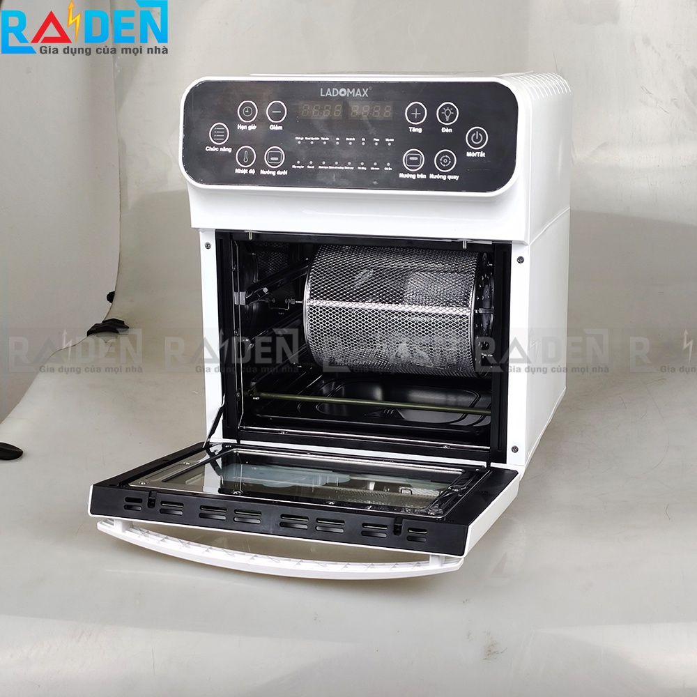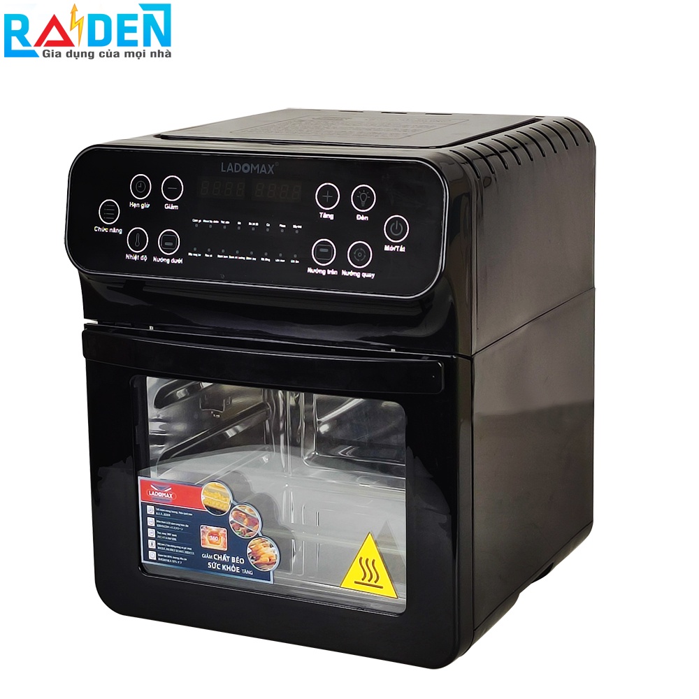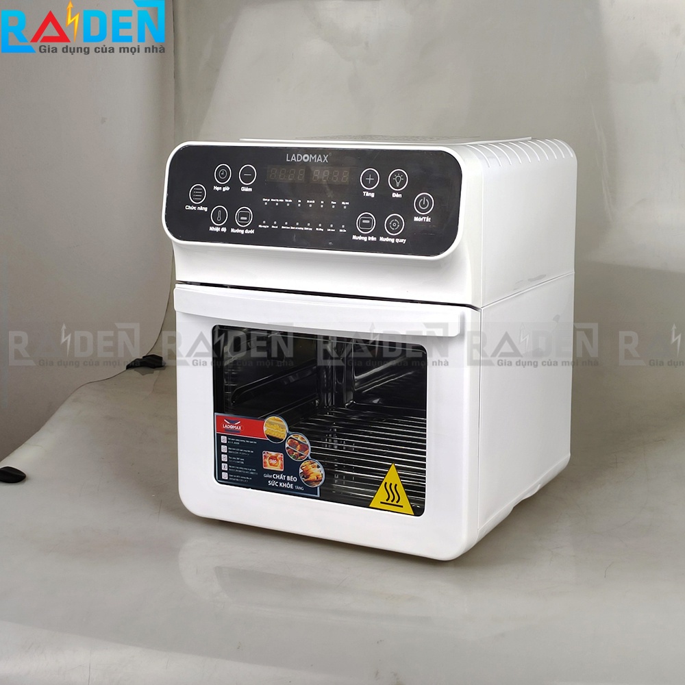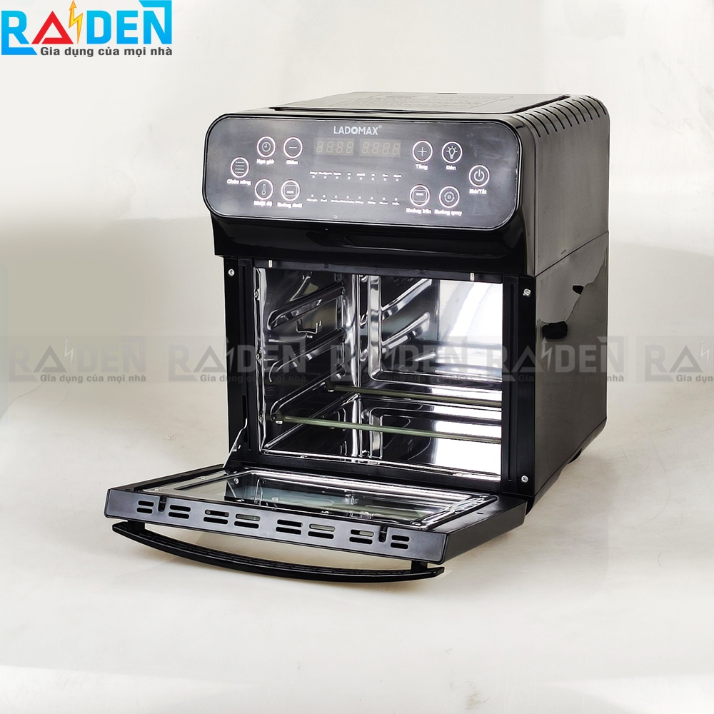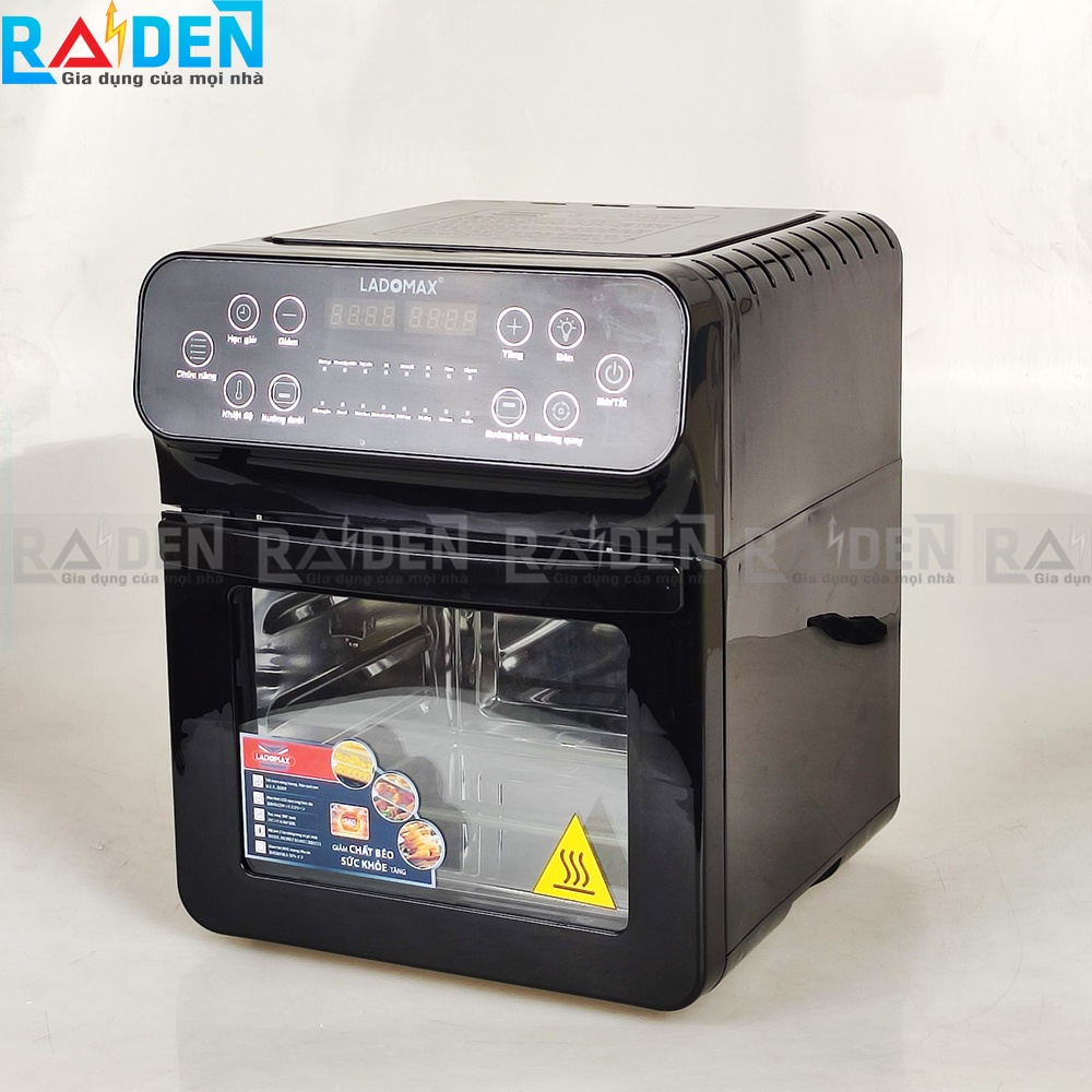 - Lò có 16 món chiên tích hợp sẵn như chiên gà, thịt, bắp, khoai tây, làm bò bít tết…Lò chiên không dầu còn có thể làm bánh kem, rã đông thức ăn như lò vi sóng và lên men thức ăn. Lò chiên không dầu Ladomax gần như có thể thay thế nồi chiên, lò nướng, lò vi sóng,…