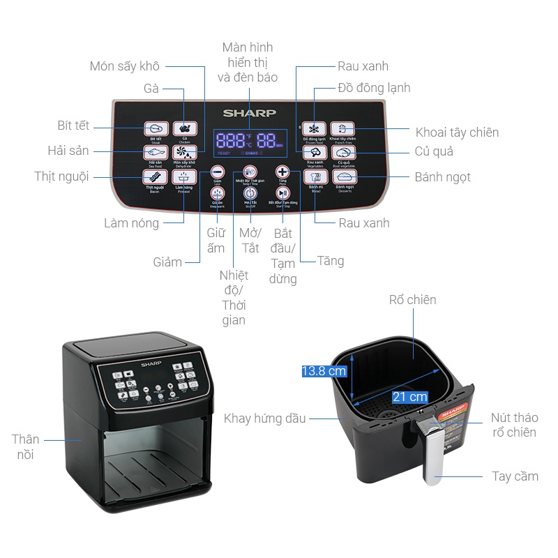 Thương hiệu: Sharp | Xem thêm các sản phẩm Nồi chiên của SharpMô tả ngắn