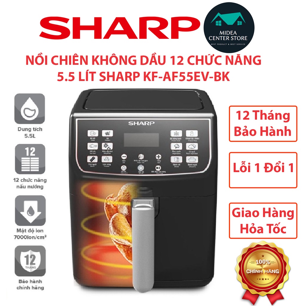 [Chính Hãng] Nồi chiên không dầu cao cấp 5,2lít Sharp KF-AF55EV-BK, lỗi 1 đổi 1, bảo hành 12 tháng toàn quốc