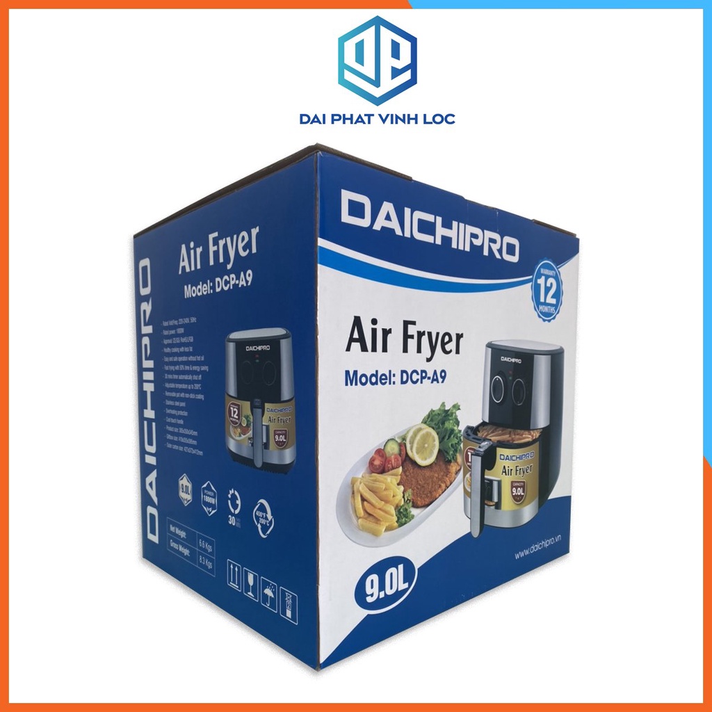[Chính hãng] Nồi chiên không dầu Daichipro DCP-A9, dung tích 9 lít, công suất 1800w – Đại Phát Vĩnh Lộc