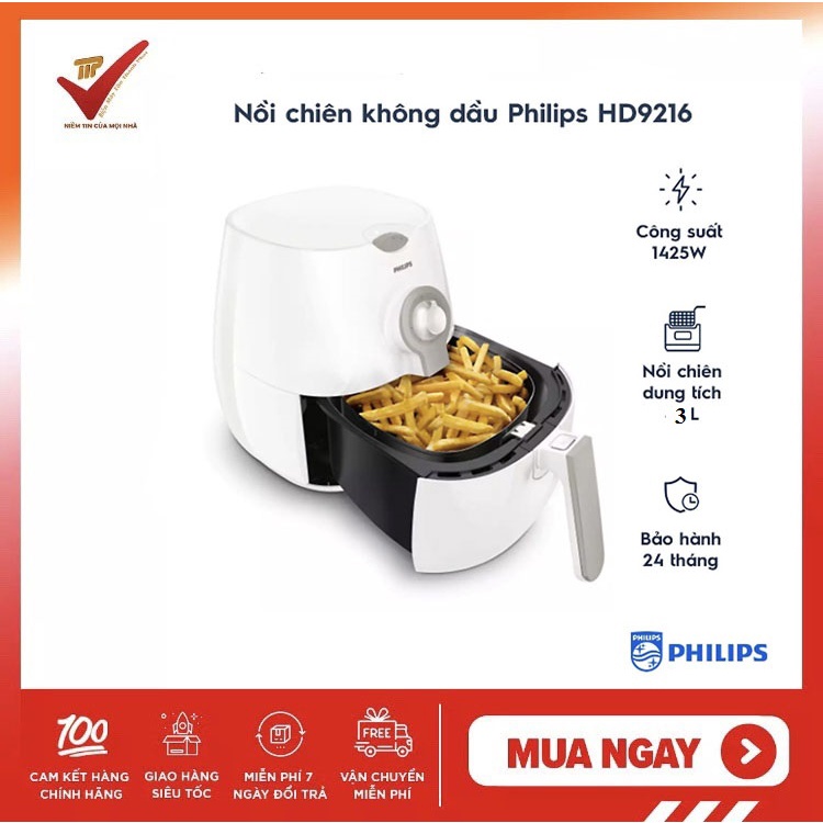 Giới thiệu (Chính Hãng) Nồi chiên không dầu Philips HD9216 3 lít CS 1425W