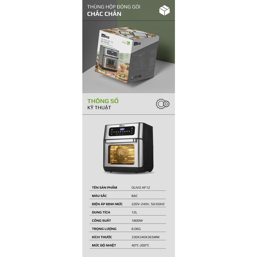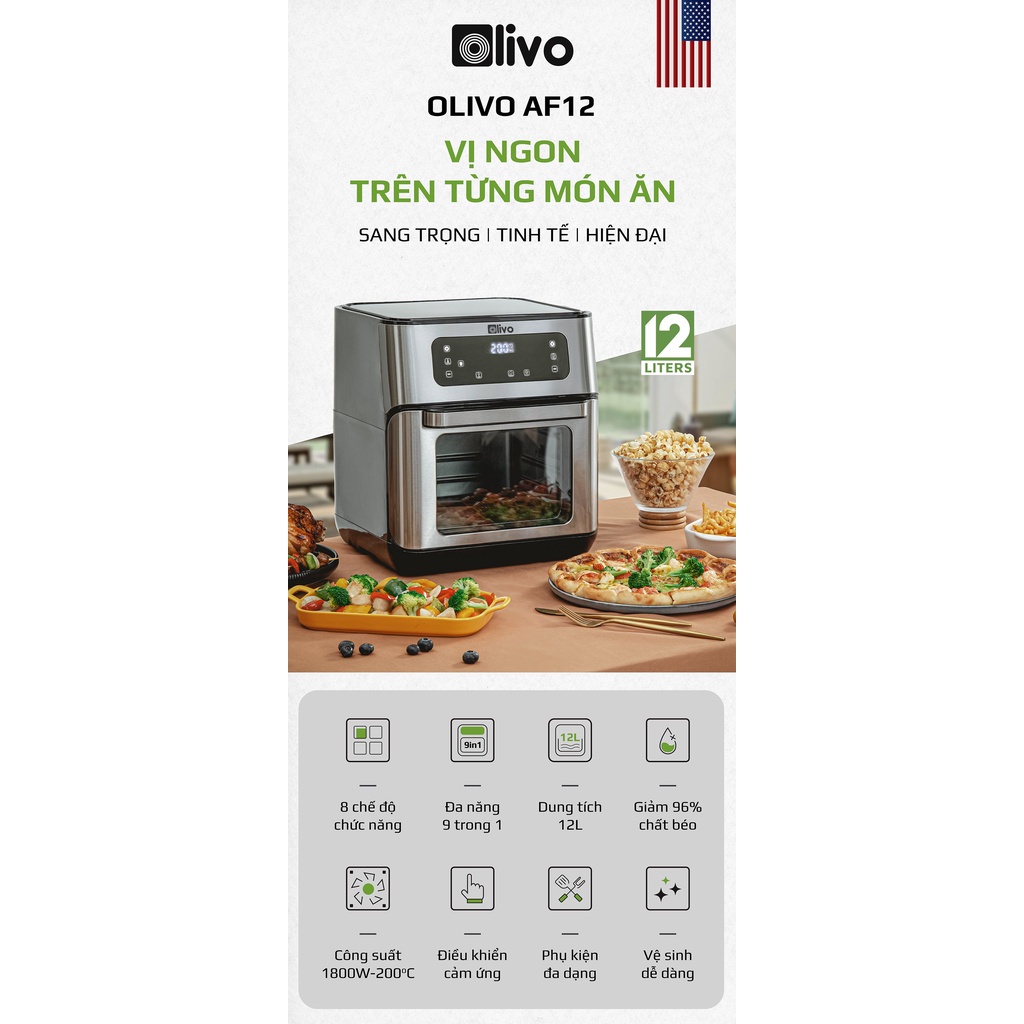 Giới thiệu [Chính Hãng] Nồi Chiên Không Dầu Olivo AF12 - BH 24 Tháng - Dung Tích 12L, Công Suất 1800W, Thương Hiệu Mỹ
