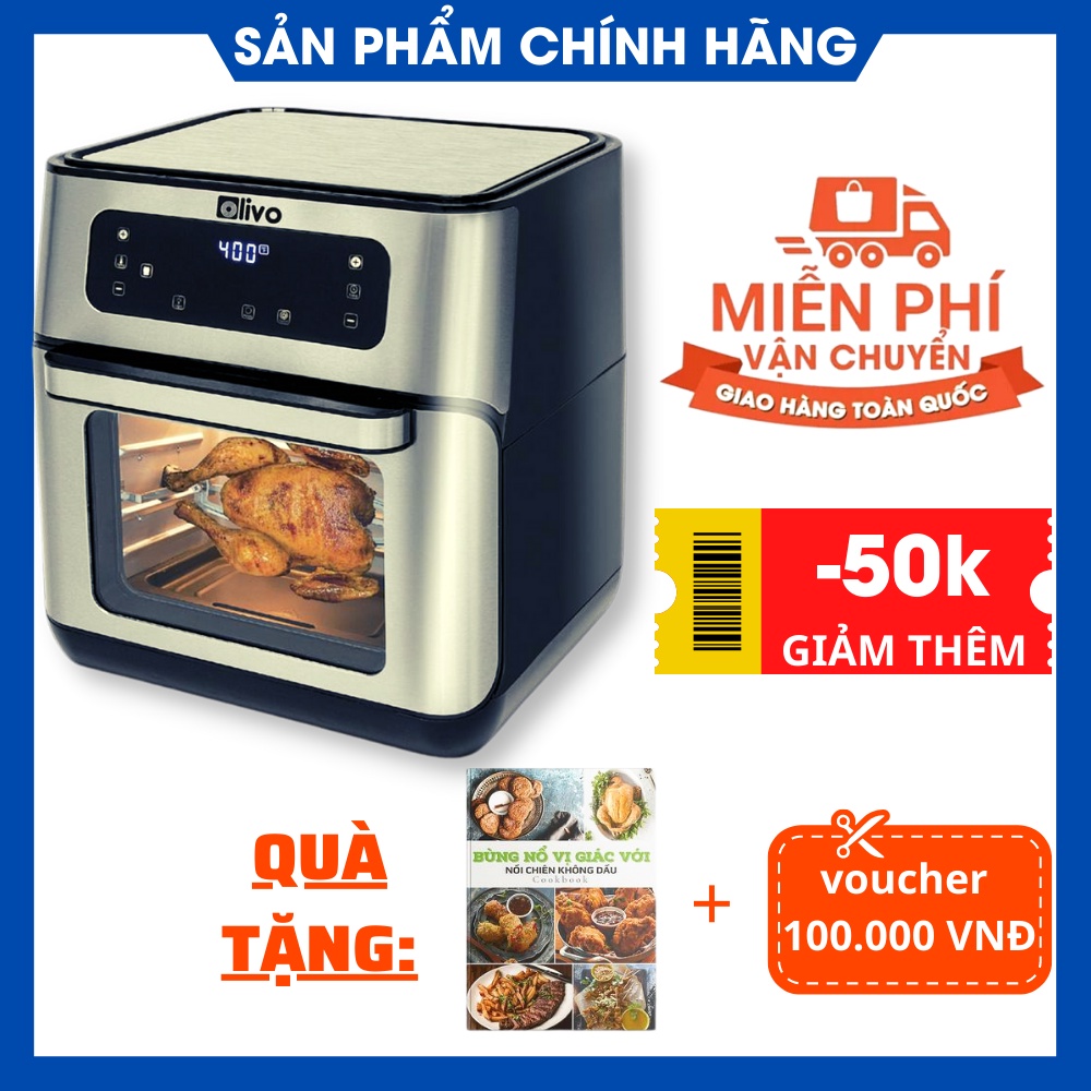 Thiết Bị Điện Gia Dụng > Đồ gia dụng nhà bếp > Nồi chiên không dầu || [Chính Hãng] Nồi Chiên Không Dầu Olivo AF12 - BH 24 Tháng - Dung Tích 12L, Công Suất 1800W, Thương Hiệu MỹCòn hàng