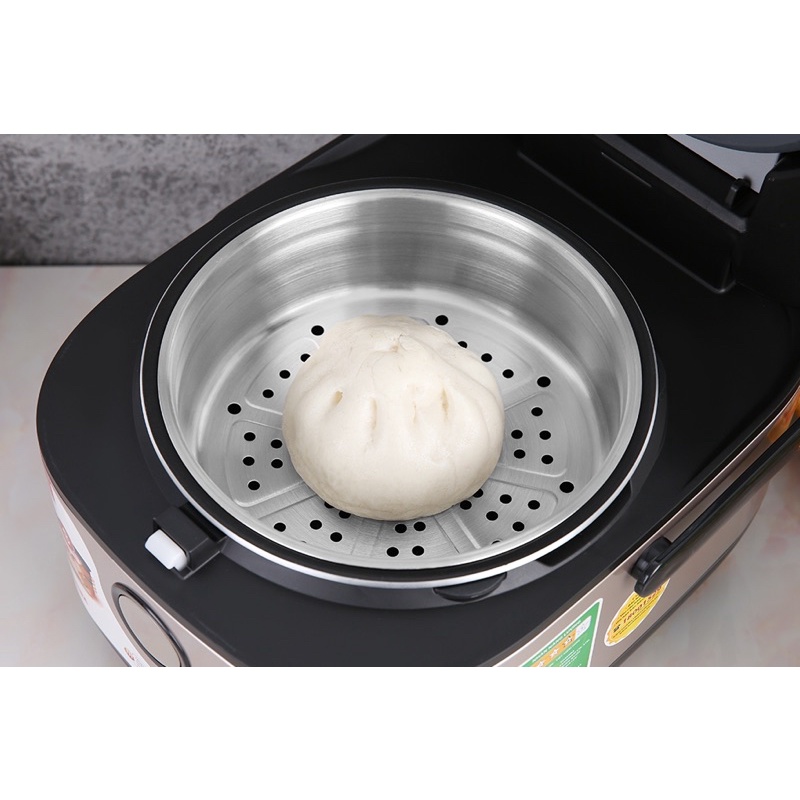Nồi cơm có các chức năng như white rice (nấu cơm), sticky rice (xôi), quick/steam (nấu nhanh/hấp), crispy rice (nấu cơm cháy), brown rice (gạo lứt), congee/soup (cháo/súp), cake (làm bánh), mixed rice (trộn cơm).