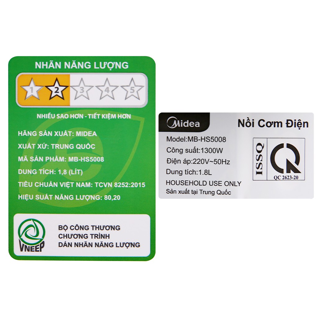 [Chính hãng] Nồi Cơm Điện Cao Tần Midea 1,8 lít MB-HS5008 hàng chính hãng , bảo hành 12 tháng toàn quốc , lỗi 1 đổi 1➡️THÔNG SỐ KỸ THUẬT