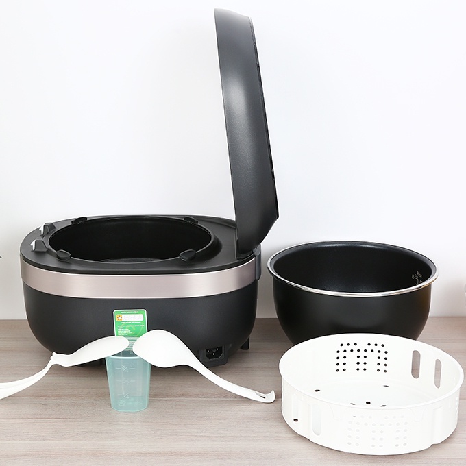 Menu nấu: Cơm trắng/Nấu cơm nhanh/Nấu cháo nhanh/Cơm gạo nếp/Cơm cuộn/Cơm cháy/Cháo trắng/Cháo đặc/Súp/Hấp/Om thịt khô