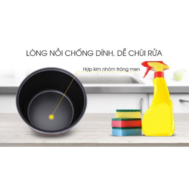 👉Lòng nồi làm bằng hợp kim nhôm tráng men chống dính bền bỉ, không tróc, cơm không bị dính vào thành nồi gây cháy