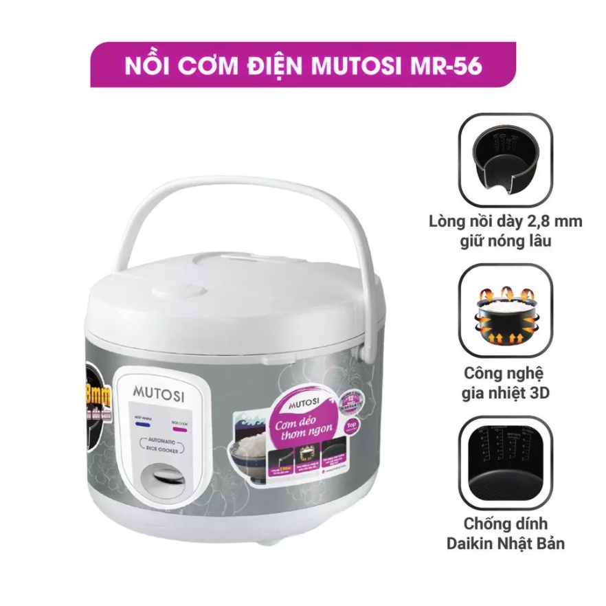 Thiết Bị Điện Gia Dụng > Đồ gia dụng nhà bếp > Nồi cơm điện || [Mã 273ELHA100K0 hoàn 7% đơn 500K] [Chính Hãng] Nồi cơm điện Mutosi MR-56Còn hàng
