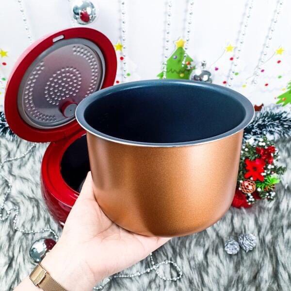 Lòng nồi 2 lớp dày 1.5 mm bằng hợp kim nhôm tráng men chống dính bền tốt, nấu cơm an toàn, chống dính cháy, vệ sinh đơn giản sau khi dùng