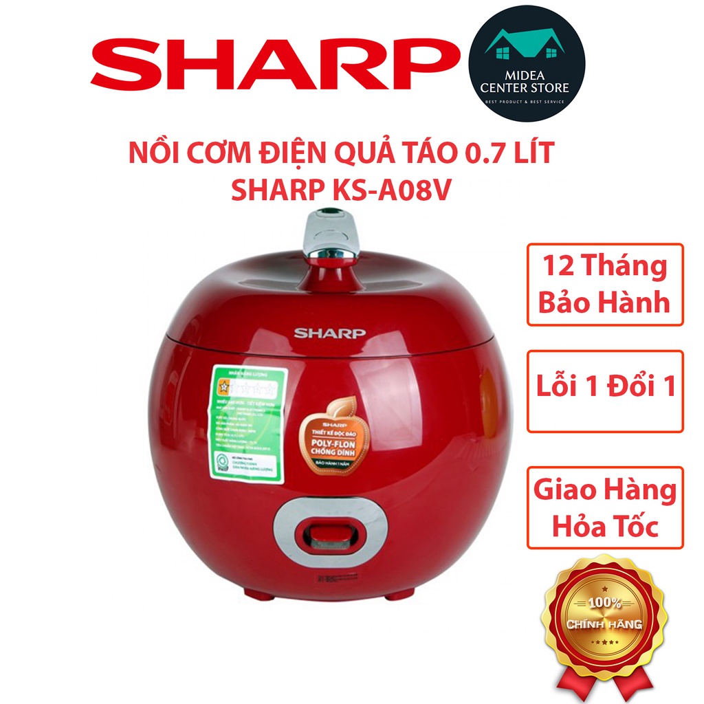 Thiết Bị Điện Gia Dụng > Đồ gia dụng nhà bếp > Nồi cơm điện || [Chính hãng] Nồi cơm điện quả táo mini 0,7 lít Sharp KS-A08V, lỗi 1 đổi 1, bảo hành 12 thángCòn hàng