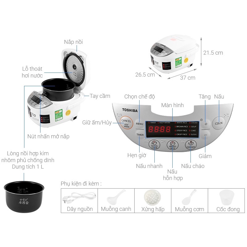 Thương hiệu: Toshiba | Xem thêm các sản phẩm Nồi cơm điện của ToshibaMô tả ngắn