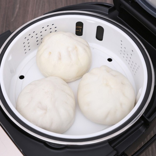 Đi kèm nồi có xửng hấp, cho phép bạn hấp cùng lúc được 3 bánh bao cỡ vừa
