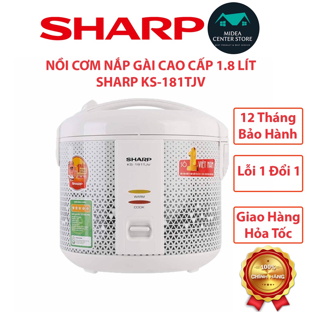 [Chính Hãng] Nồi cơm nắp gài Sharp 1,8 lít KS-181TJV, lỗi 1 đổi 1, bảo hành 12 tháng toàn quốc