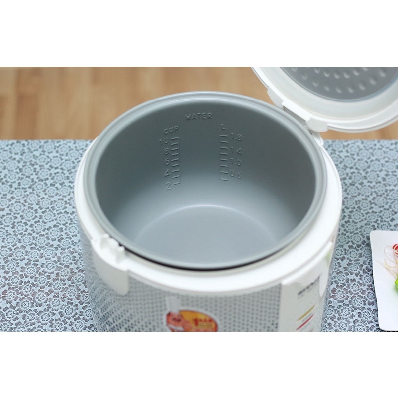 🧡Thiết kế tiện ích Đun nóng quanh thân nồi: Giúp phân tán nhiệt đồng đều làm cơm chín đều hơn. Đĩa đun nóng ở đáy nồi: Đĩa đun nóng có kích thước lớn giúp nấu cơm chín nhanh hơn. Chất chống dính poly-flon: Giúp cơm không bám vào thành nồi gây cháy mà lại dễ chùi rửa.