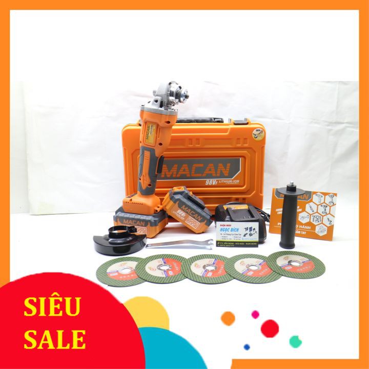 Nhà cửa & Đời sống > Dụng cụ & Thiết bị tiện ích > Dụng cụ > Cưa, máy cắt & máy mài || [ HÀNG NỘI ĐỊA] Máy Mài Góc, Máy Cắt Dùng Pin MACAN 98Vf Không Chổi Than, Pin 10 cell 2000 mah KÈM 5 LƯỠI CẮT SẮTCòn hàng