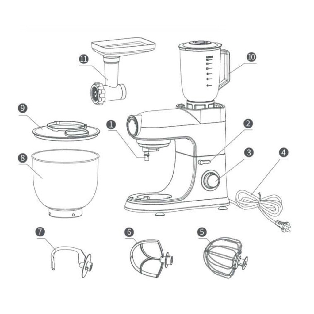 Máy trộn bột đa năng và bộ phụ kiện đi kèm
