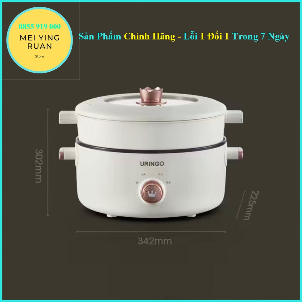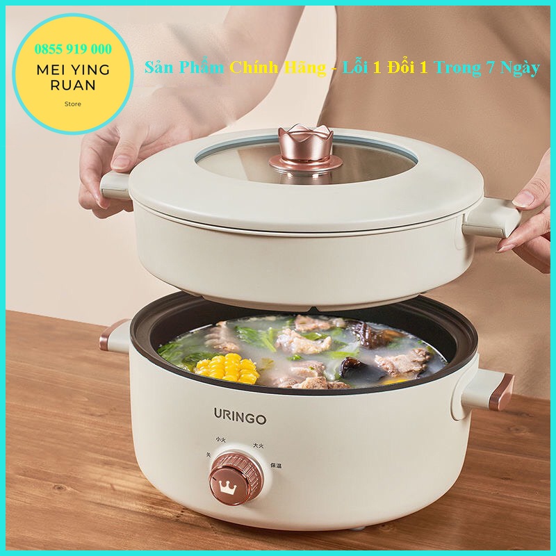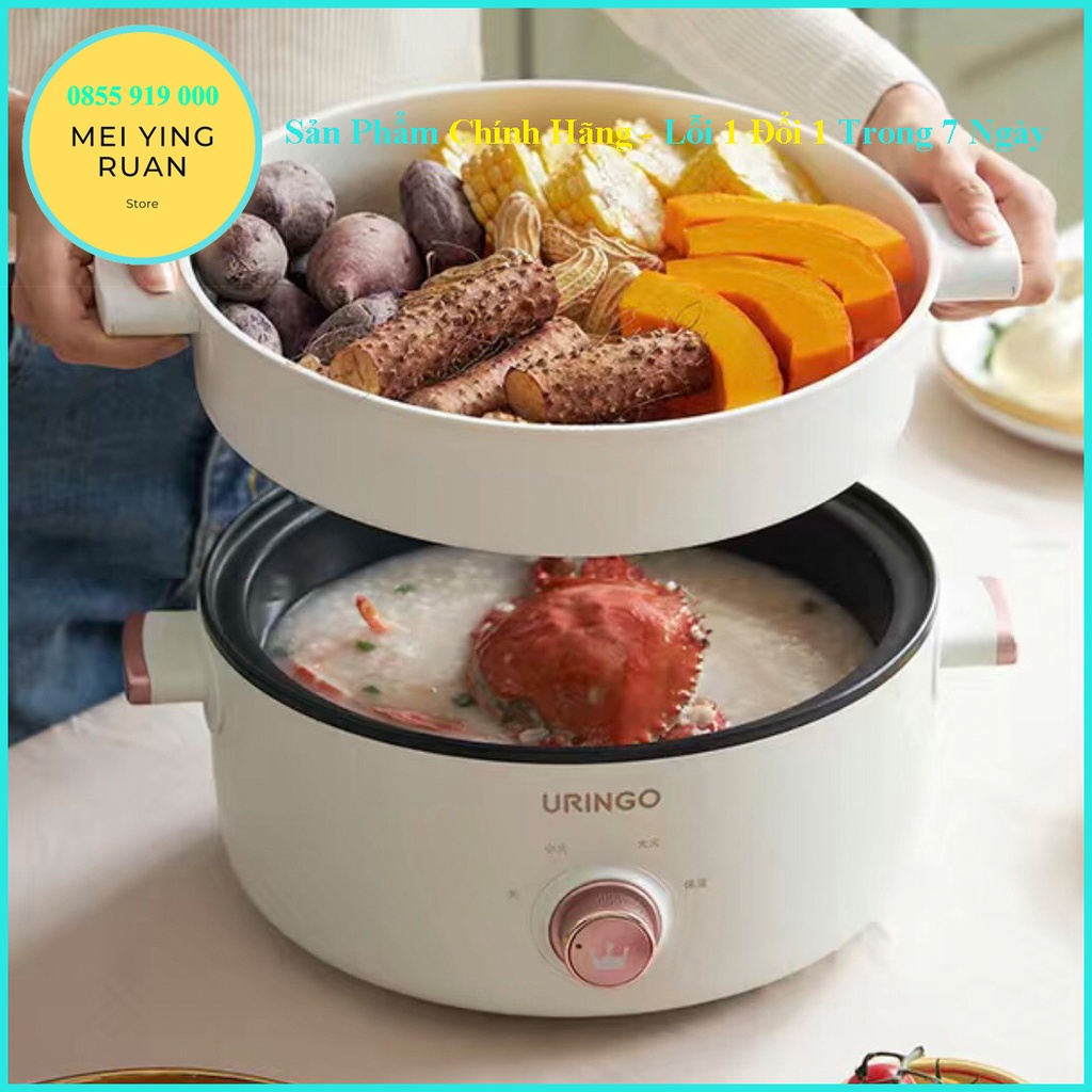 [Chính hãng] Nồi điện đa năng URINGO 3L - vương miện , tráng men chống dính đa năng cao cấp ( có khay hấp) bh 12 tháng