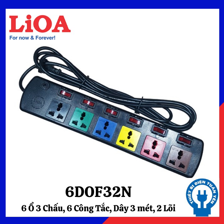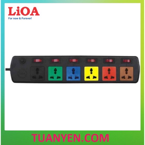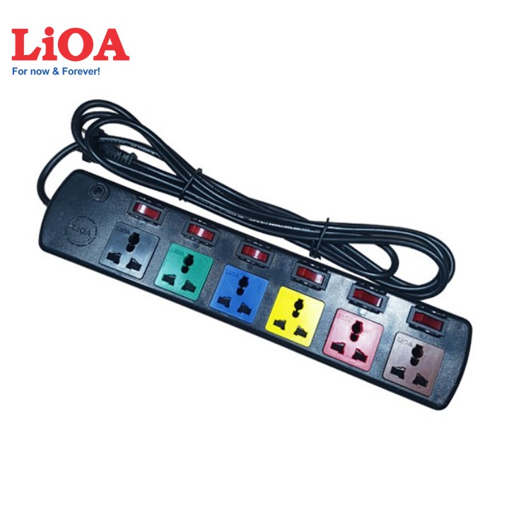Thiết Bị Điện Gia Dụng > Mạch điện & Phụ tùng > Ổ cắm điện & Dây nối || [chính hãng] Ổ cắm điện 6 lỗ 6 công tắc LIOA Model 6DOF32N, ~2000W, dây dài 3mCòn hàng