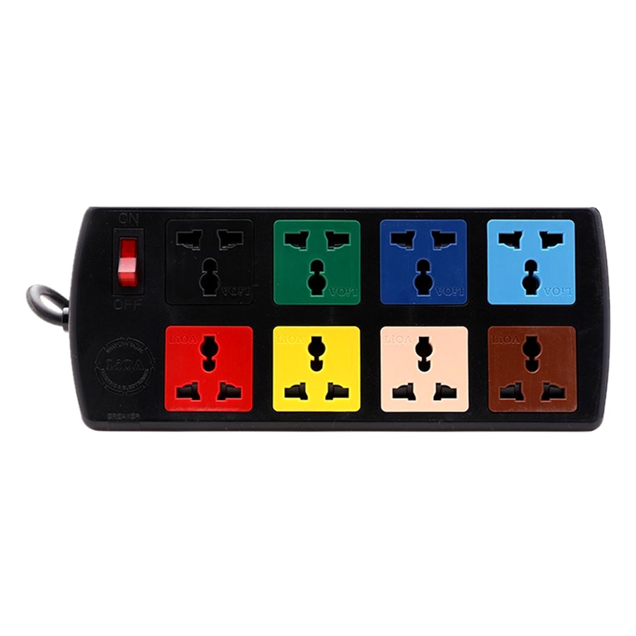 Ổ cắm LiOA 8 lỗ 3 chấu 8D32N dây dài 3m với 8 lỗ cắm 3 chấu1. Trên mặt cắm có 8 lỗ cắm 3 chấu mõi lổ cắm là một màu riêng tránh sự nhầm lẫn khi sử dụng.