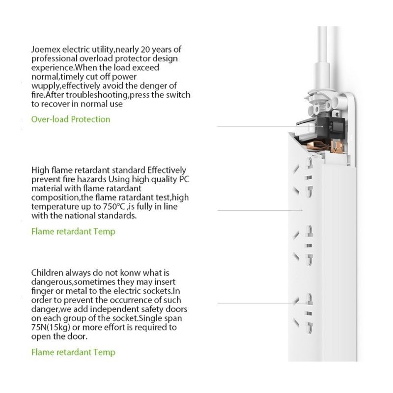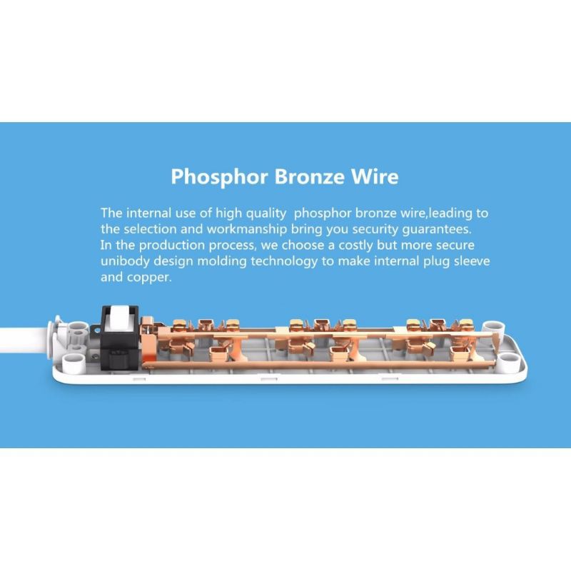 -Bên trong ổ cắm Xiaomi power strip màu đen các chi tiết kim loại dẫn điện đều được làm hoàn toàn từ chất liệu đồng cao cấp. Mang đến cho sản phẩm khả năng dẫn điện tốt, đặt biệt chất liệu dẫn điện có khả năng chịu được nhiệt độ lên tới 750˚C. Đảm bảo sự bền bỉ và khả năng vận hành ổn định của sản phẩm trong quá trình sử dụng.