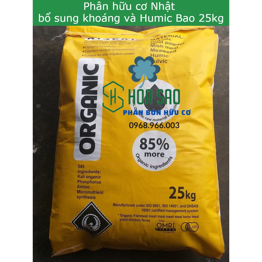 Phân hữu cơ khoáng Nhật bổ sung Humic, nhập khẩu nguyên bao 25kg, có tem nhập khẩu đẩy đủ. Cam kết 100% hàng chính hãng nhập khẩu từ Nhật BảnPhân hữu cơ của Nhật bổ sung dinh dưỡng cực tốt cho cây, dùng được cho mọi loại cây trồng như các loại hoa (đặc biệt tốt cho hoa hồng), các loại rau, cây ăn trái, cây cảnh, bonsai