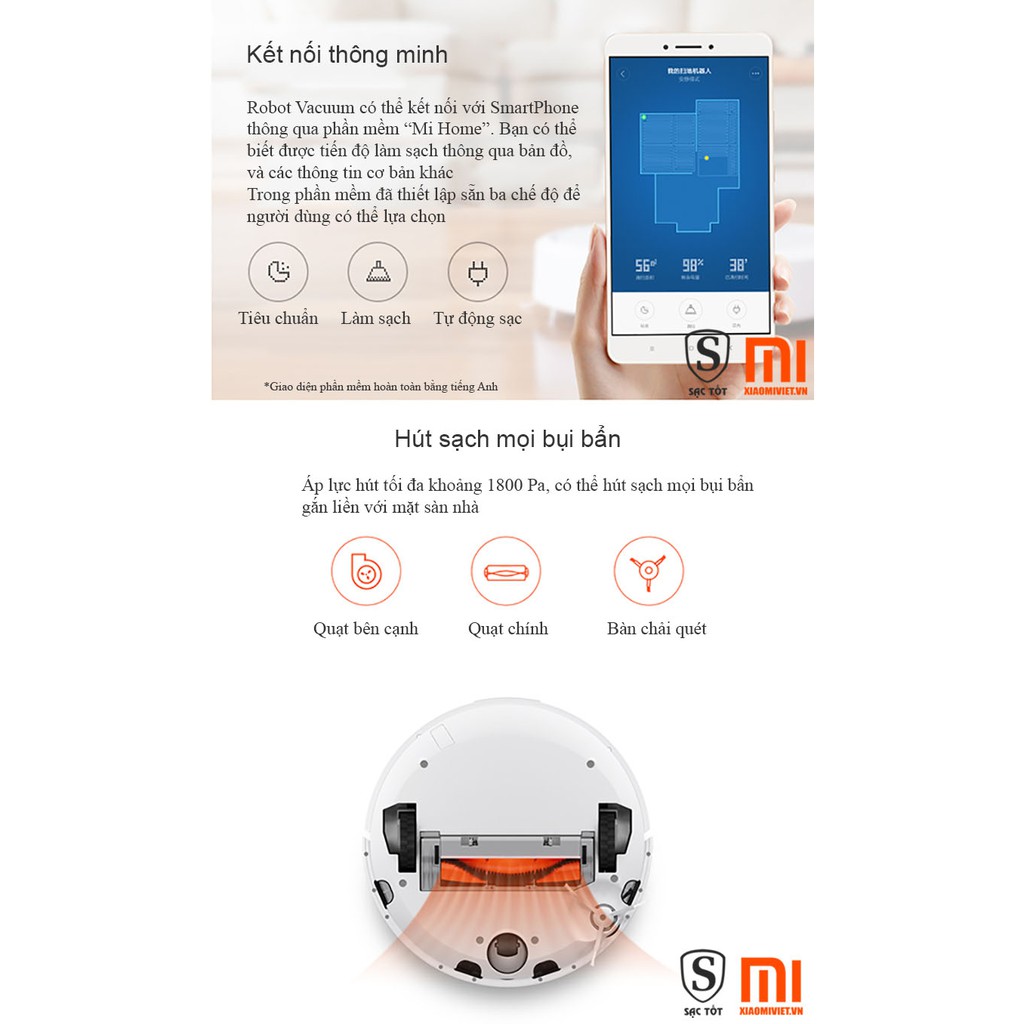 ====== Xin Quý Khách Lưu Ý : Sản Phẩm chỉ bán/giao hàng tại TPHCM và các khu vục lân cận , nếu Quý Khách ở tỉnh xa muốn mua hàng vui lòng thanh toán bằng thẻ ngân hàng trên shopee ( không nhận Ship COD đối với các tỉnh thành xa TPHCM ). Cảm Ơn.✔ Robot hút bụi tự động là sản phẩm mới nhất của Xiaomi trong lĩnh vực điện gia dụng. Sản phẩm Xiaomi Mi Robot Vacuum có giá bán chỉ khoảng 250 USD, rẻ hơn gần 80% so với giá của một sản phẩm tương tự được biết đến khá nhiều tại phương Tây đó là Roomba 980 của hãng iRobot (900 USD).