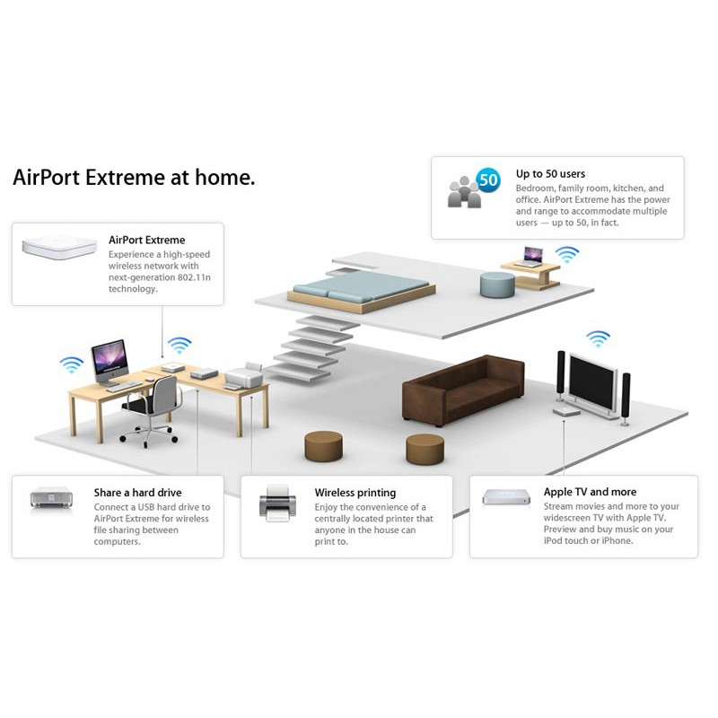 - Router Airport Extreme phù hợp làm thiết bị trung tâm với cường độ phát sóng cao. Phù hợp với gia đình, quán cafe, văn phòng nhỏ. Với khả năng phủ sóng 3 tầng (1 trệt 2 lầu diện tích phù hợp). Đây là một thiết bị phát wifi cực kì ổn định.- Hàng nhâp US 100% phát hiện hàng rác từ China tặng luôn thiết bị.