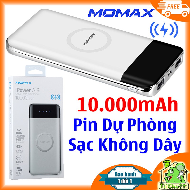 🚫 Hàng shop nhập khẩu chính hãng. Bảo Hành: 6 tháng 1 đổi 1 tại shop.⚡ Pin dự phòng 10.000mAh có tích hợp Sạc không dây chuẩn Qi chính hãng Momax cho các máy có hỗ trợ sạc không dây chuẩn Qi.