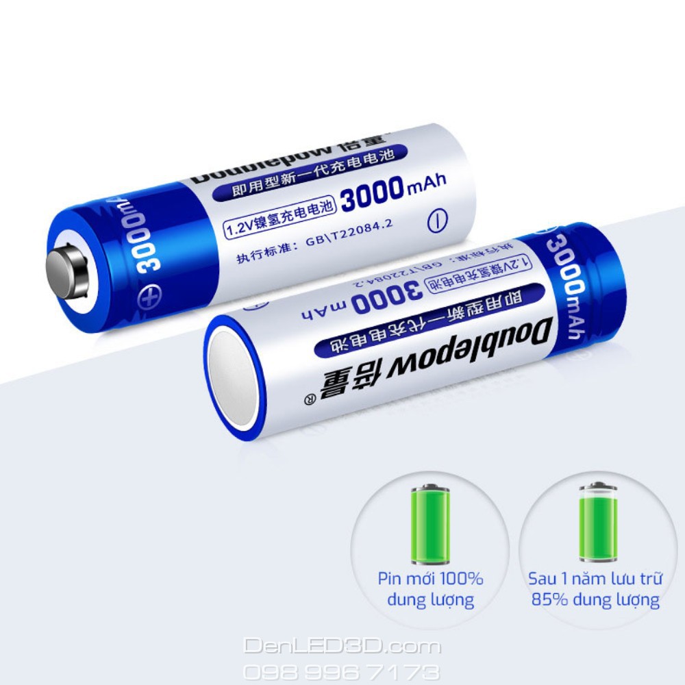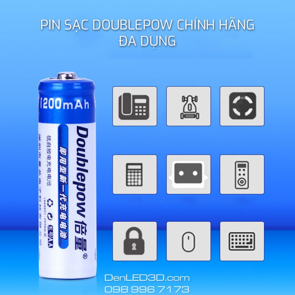 Pin sạc Doublepow chính hãng được Cửa Hàng Nam Việt phân phối với cam kết chất lượng và bảo hành 1 đổi 1 trong tuần đầu nếu có bất kỳ lỗi gì.Pin sạc AA (hay còn gọi là pin tiểu) Doublepow chính hãng có thể sử dụng trong các loại đèn LED, đồ chơi, chuột không dây, micro karaoke... với thời gian sử dụng lâu dài, tiết kiệm tiền vì có thể sạc đi sạc lại tới 1000 lần.