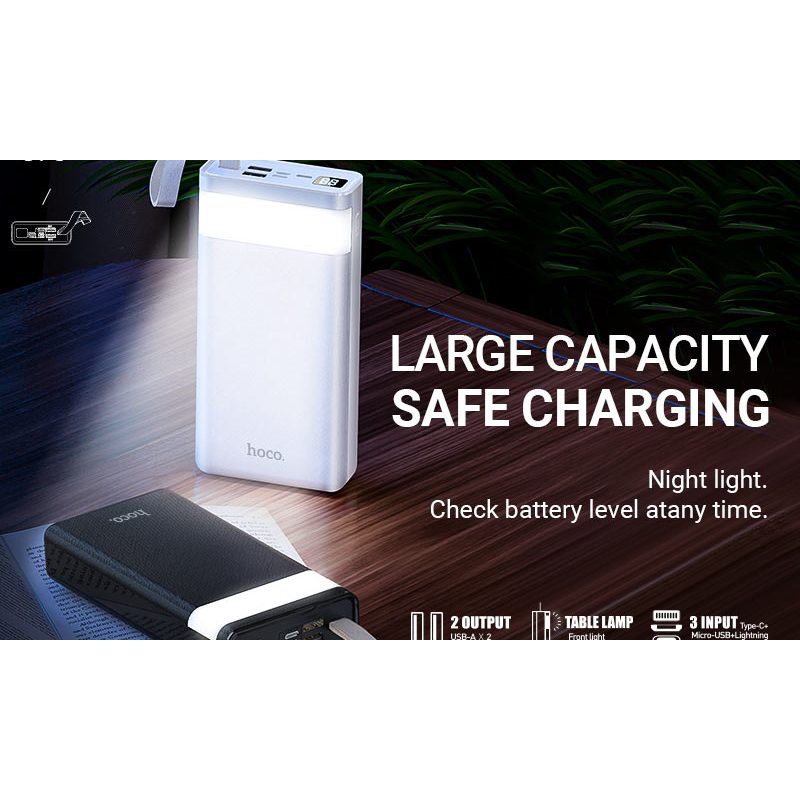✅Chính Hãng✅Pin Sạc Dự Phòng 30000 mAh Hoco J73 Tích Hợp Đèn Bàn Đèn Led HIển Thị Kỹ Thuật Số 2 Cổng USB BH 12 Tháng