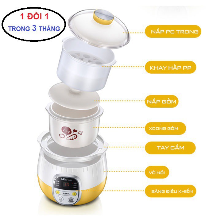 👉 6 tính năng : hấp, hầm canh, nấu cháo, chưng yến, súp chè, giữ ấm