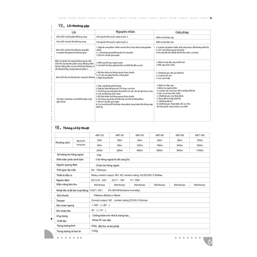 Hàng rào báo động chống trộm bằng cảm biến hồng ngoại ABT-100 và ABT-20
