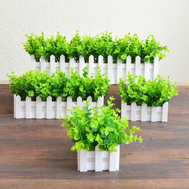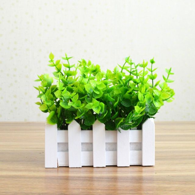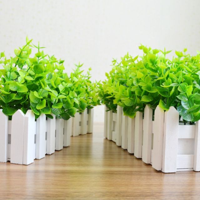 💟 Kích thước: chiều dài hàng rào 16cm, chiều cao cả lá giả 15cm💟 Chất liệu: hàng rào gỗ sơn trắng, lá cỏ nhựa
