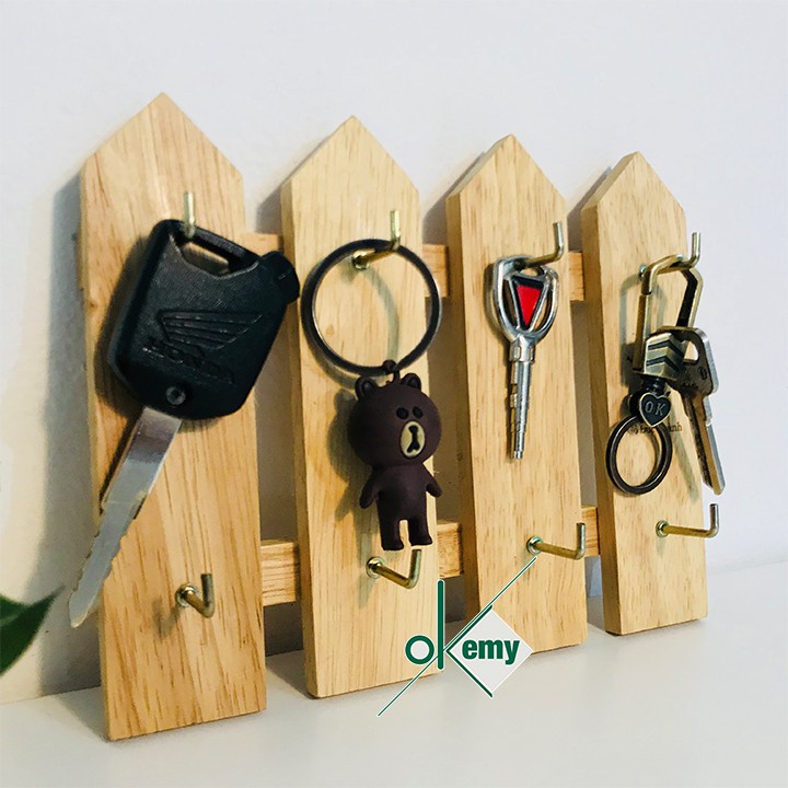 Hàng rào chìa khóa 4 thanh được làm hoàn toàn bằng gỗ cao su tự nhiên đạt tiêu chuẩn xuất khẩu.* Kích thước: 3.5 x 20.5 x 17 cm