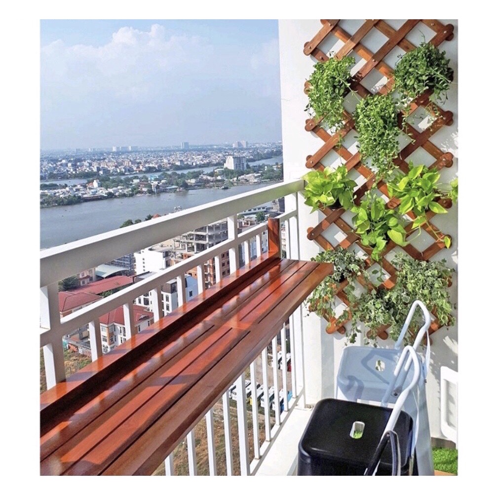 - Chất liệu: Giàn gỗ treo cây ban công được làm từ gỗ thông được xử lý chống mối mọt, ẩm mốc