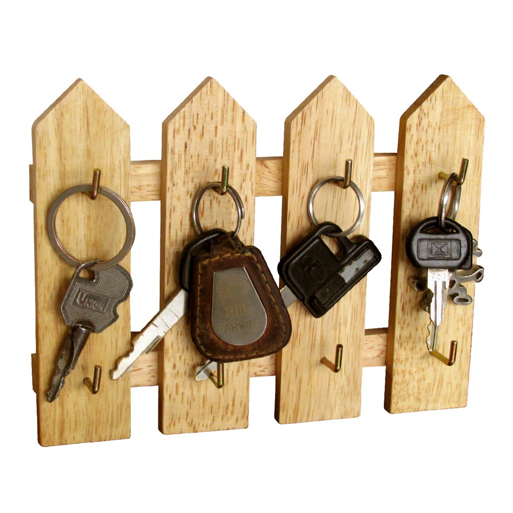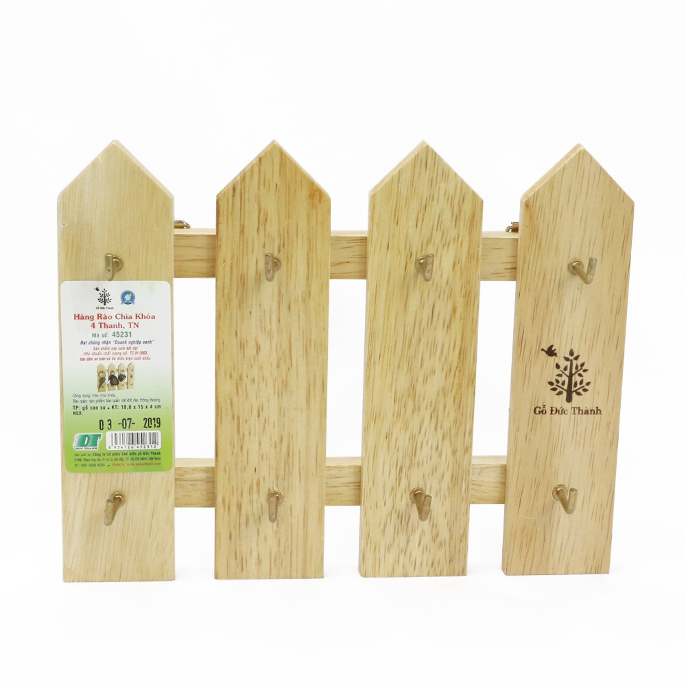 Hàng rào 4 thanh gỗ với 8 móc treo giúp bạn treo được chìa khóa cho cả gia đình gọn gàng ngăn nắp