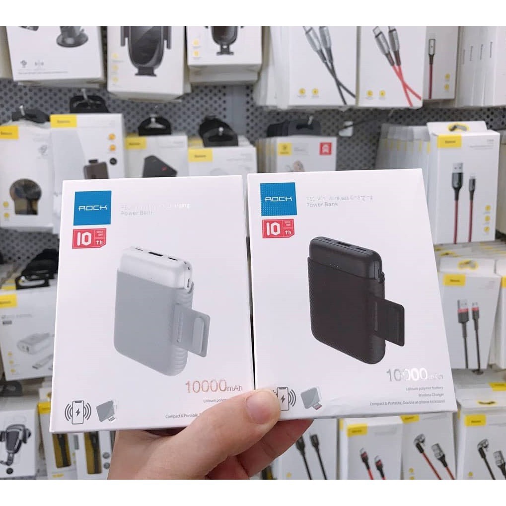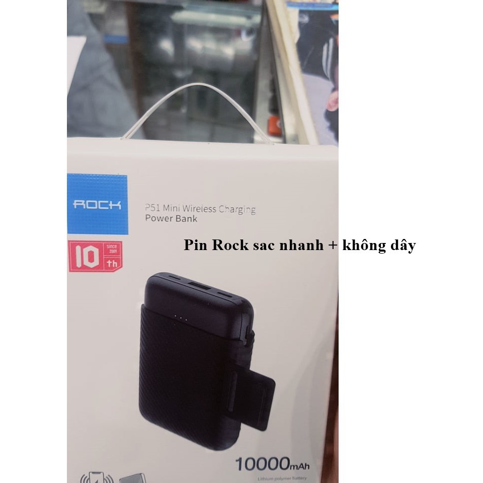 - Pin sạc dự phòng Rock P51 mini wireless chager có dung lượng 10.000mAh có thể sạc được đến 85% tổng dung lượng , với kết cấu lõi là polyme lithium siêu bền giúp tuổi thọ sự dụng pin được bên lâu hơn loại thông thường