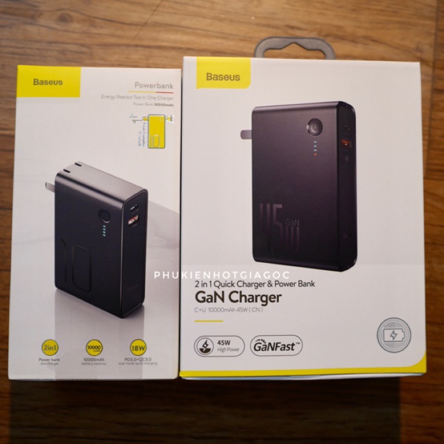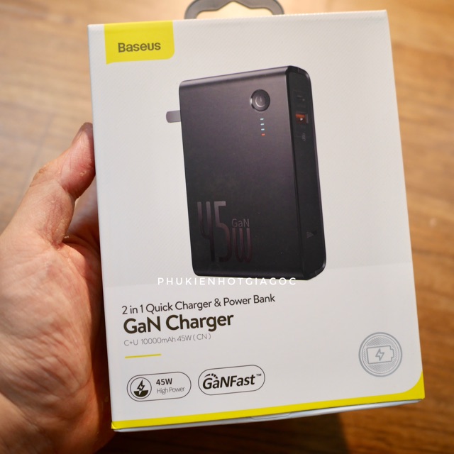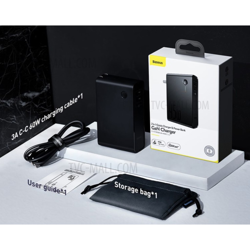 *** Củ sạc kiêm pin sạc dự phòng Baseus GaN 2 in 1 sạc nhanh & Bộ sạc C + U 10000mAh 45W Đen không kèm cáp.