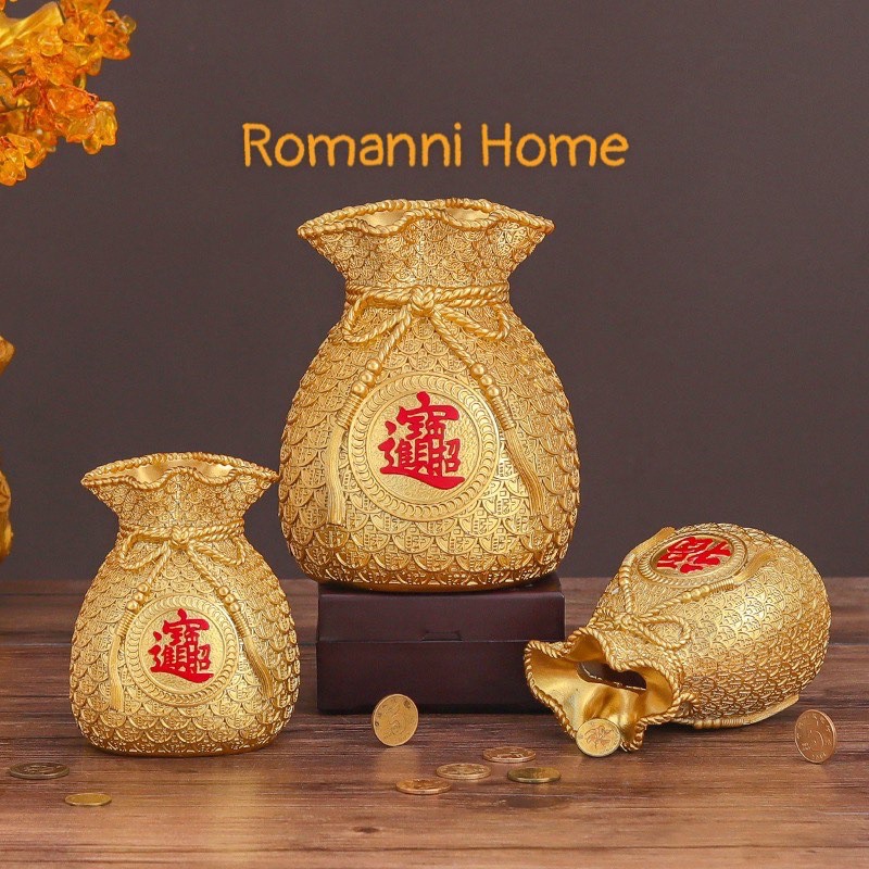 [HÀNG SẴN] Bình cắm lúa mạch, Bình hoa nhựa resin hình dạng túi tiền phong thủy quà tặng trang trí lễ Tết đẹp mắt 2021
