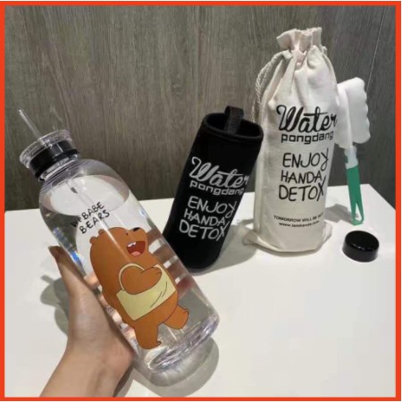 [Hàng Sẵn] Bình Nước Gấu Bear 1000Ml Kèm Phụ Kiện (Kèm Ảnh Thật Và Video Thật)🔴Combo : Bình + Túi vải rút + Túi Cách nhiệt/chống sốc + Cọ Rửa Bình + 2 nắp (nắp thường & nắp có lỗ để luồn ống hút) + Ống hút nhựa trắng