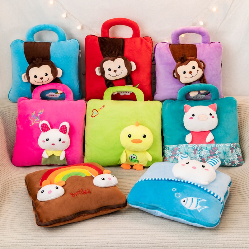 Thiết kế đẹp dễ thương phù hợp mọi lứa tuổi 3 chức năng tiện lợi : tựa lưng, mền , gối, ủ tay ngủ trưa, du lịch, xe giường nằm, đọc sách, xem tv