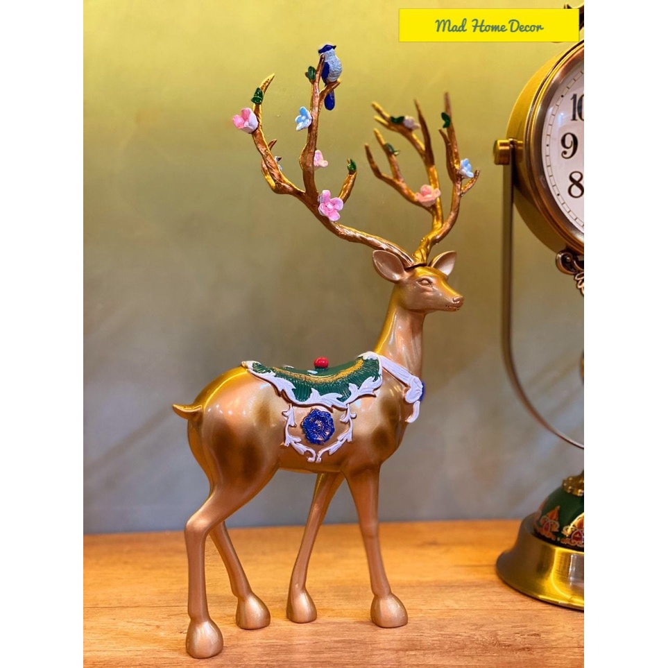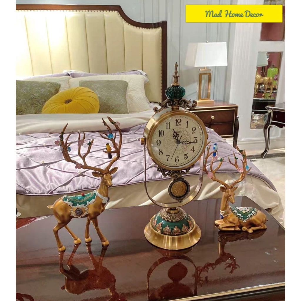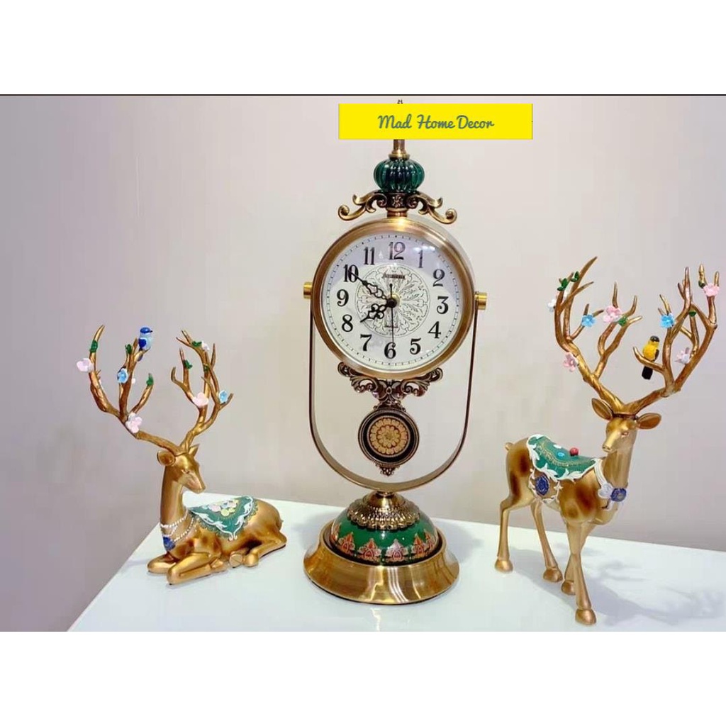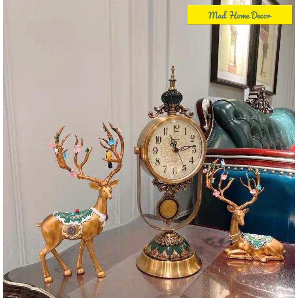 Giới thiệu [HÀNG SẴN] Đồng Hồ Trang Trí Decor Hươu Vàng-Cặp hươu vàng và chiếc đồng hồ sang chảnh-Chuyên xuất Châu Âu