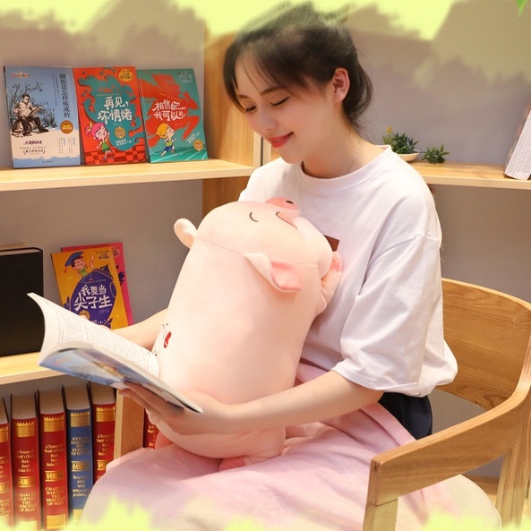 Giới thiệu [Hàng Sẵn] Gối ôm hình chú Heo bông buồn ngủ kèm Chăn Mền ngủ Mịn Cao cấp sang trọng dể thương
