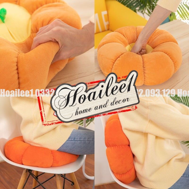 Giới thiệu [Hàng sẵn] Gối tựa lưng sofa đệm tròn ngồi bệt hình bí ngô bánh xe sang chảnh, vải nhung cao cấp