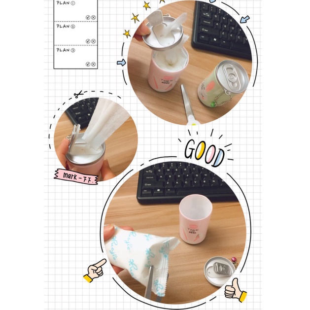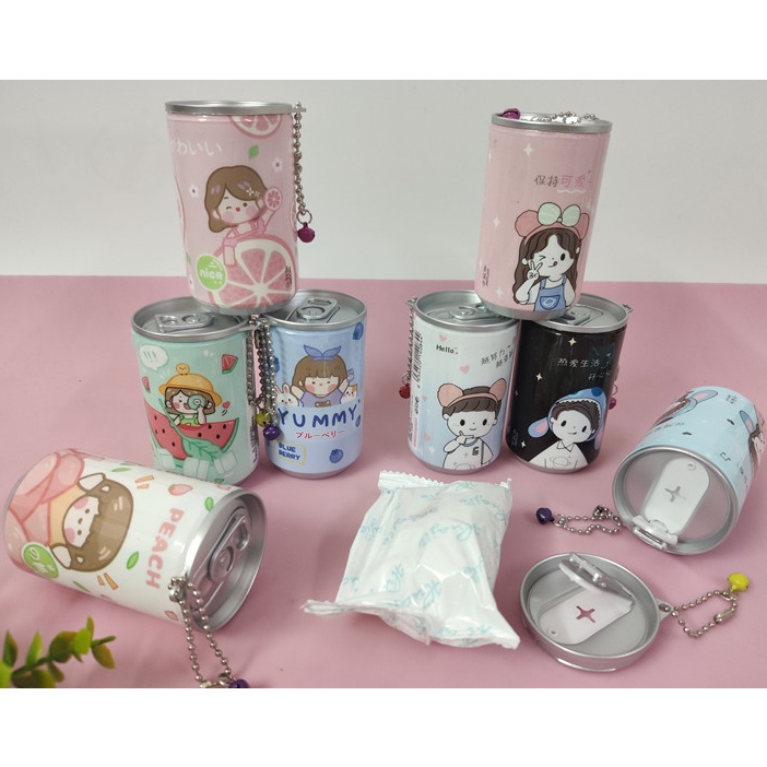 Hộp đựng khăn giấy Dạng lon nước giải khát, có lỗ khui rút khăn giấy ướt rất độc đáo và đáng yêu.