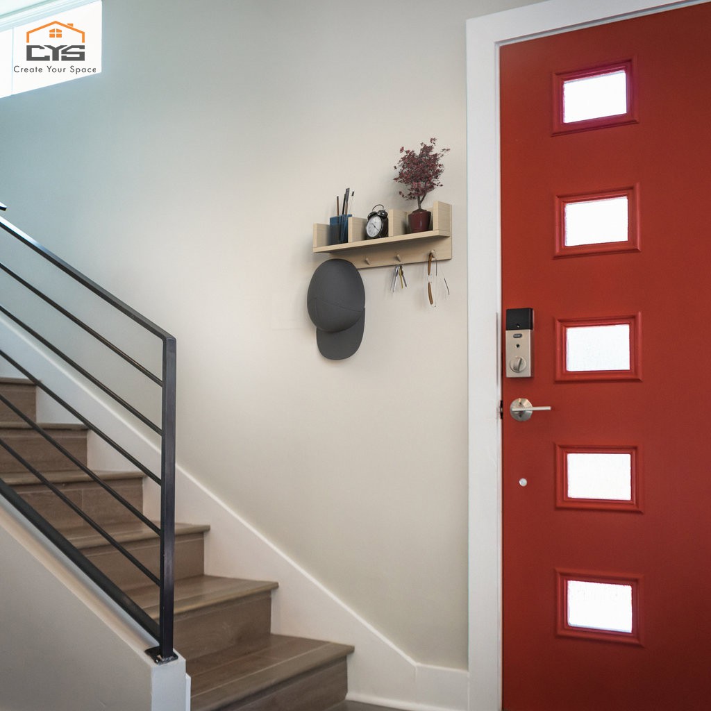 - Giúp khu vực để chìa khóa, đồ đạc gọn gàng, có thể để hoa, sách lên trên kệ trang trí.