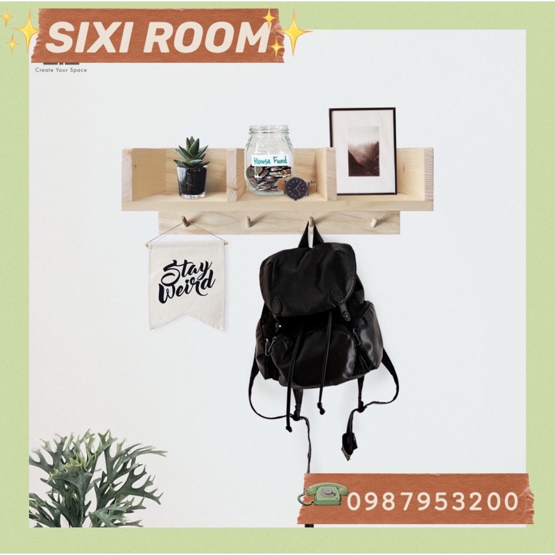 Nhà cửa & Đời sống > Nội thất > Kệ & Giá || ( Hàng sẵn ) - Kệ gỗ đa năng treo tường để đồ, móc khóa - Kèm tua vítCòn hàng