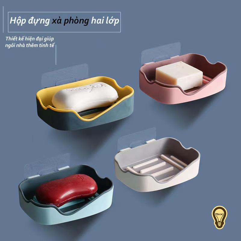 [ HÀNG SẴN ] Khay Kệ Đựng Xà Phòng 2 Lớp Chống Đọng Nước Dán Tường Cao Cấp Tiện Dụng Không Cần Khoan Tường MOXI.