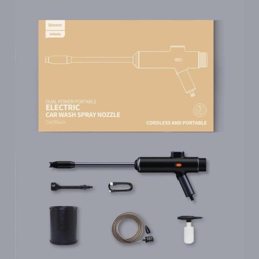 - Chất liệu kim loại chắc chắn và sang trọng, sử dụng pin sạc tiện dụng cùng với khả năng kháng nước iPX4 . Vòi xịt tăng áp rửa xe ô tô sử dụng pin sạc Baseus Dual Power Portable Electric Car Wash Spray Nozzle thật sự là một trợ thủ đắc lực dành cho bạn .