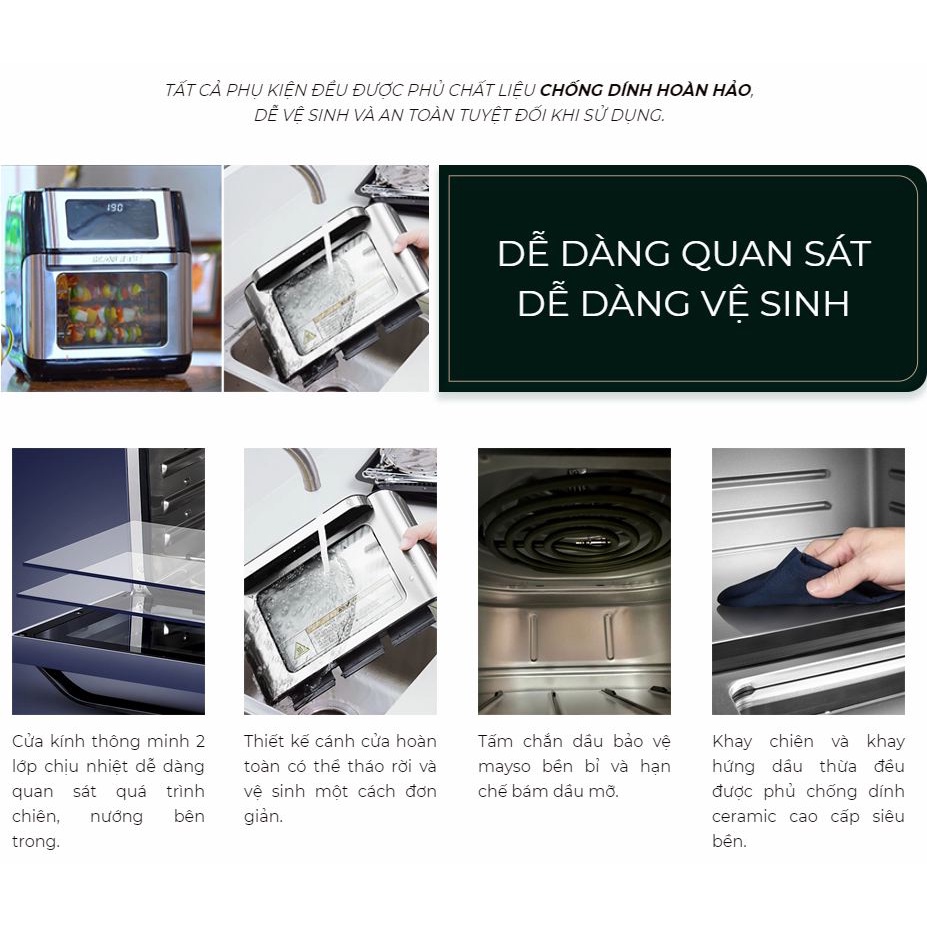– Khay chiên và khay hứng dầu thừa đều được phủ chống dính ceramic cao cấp siêu bền, không những hạn chế cháy khét mà còn chống bám dính thực phẩm, dễ dàng vệ sinh, tiện lợi hơn cho người dùng.